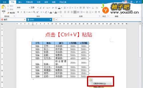 2接下来新建一份Word文档,设置【Ctrl+V】组合键,将复制的表格内容保存到Word文档中,如图所示: