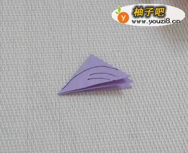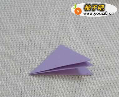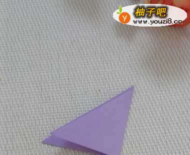 准备一张正方形的彩纸,对角对折后,再对折一下。