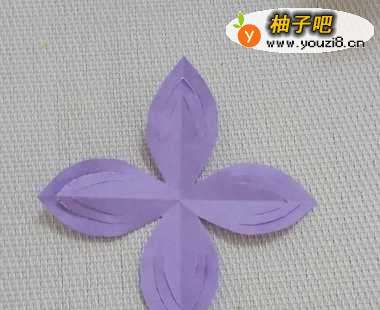 5将中间的部分,向中心拉一下,能用胶水粘在中点处,立体花朵就做好了。
