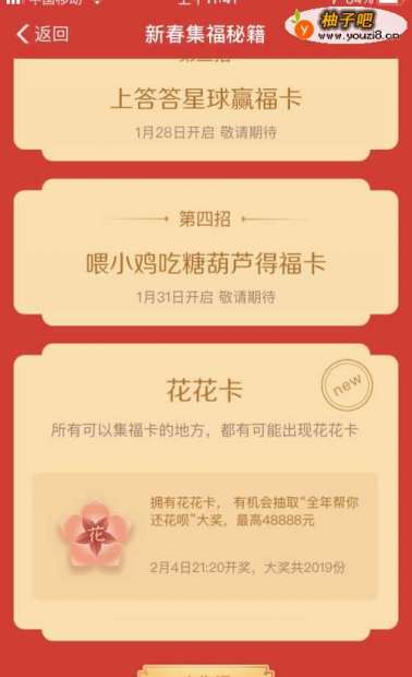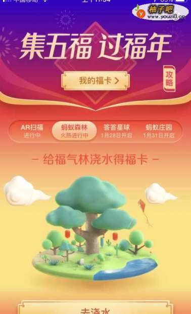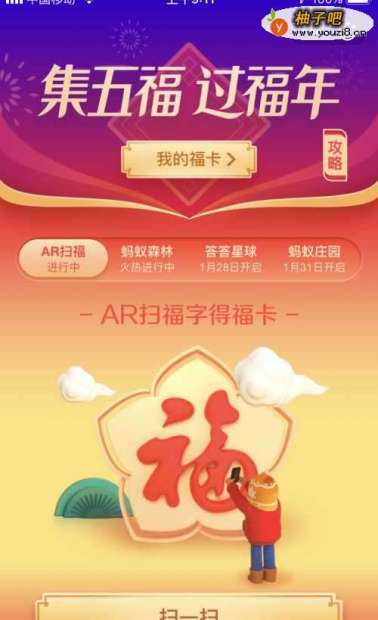 3获得福卡的方式一共有四种,最先开通的是AR扫福和蚂蚁森林浇水得福字,以后还会陆续开通答答星球和蚂蚁庄园获得福字的策略。