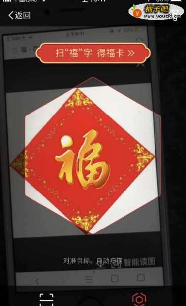 7点击下方扫一扫,扫描任意的福字,即可获得福卡,就算是在电脑上打出一个福字,也能扫出来,不过要放大一些。