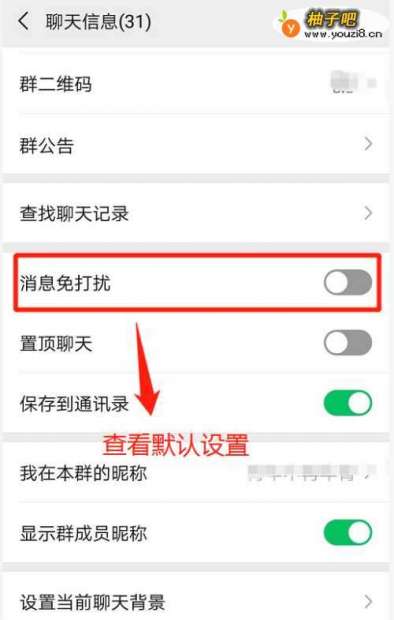 5在”聊天信息“窗口中,查询”消息免打扰“默认配置是关闭。