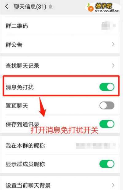 6在”聊天信息“窗口中,启用”消息免打扰“开关。