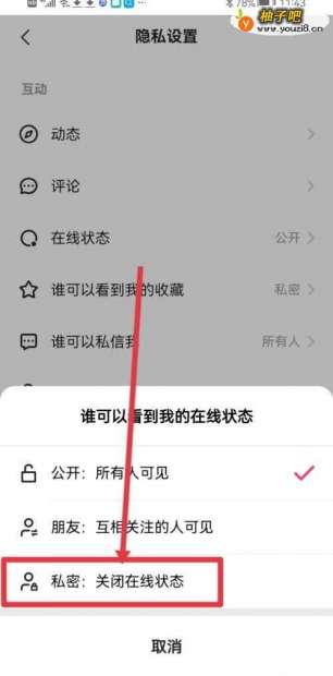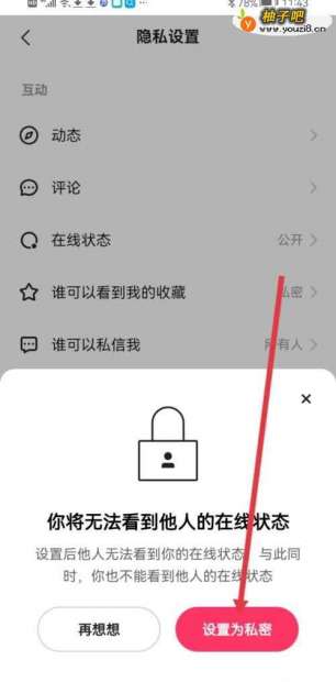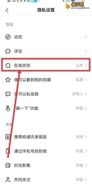 4进入隐私配置,点击【在线状态】。