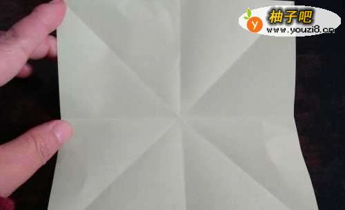 我们先把彩纸的中间折出米字型,然后把相邻的两边向着中线对折。然后把另外两侧向内折一点。