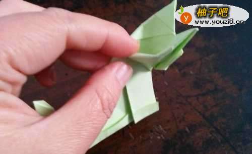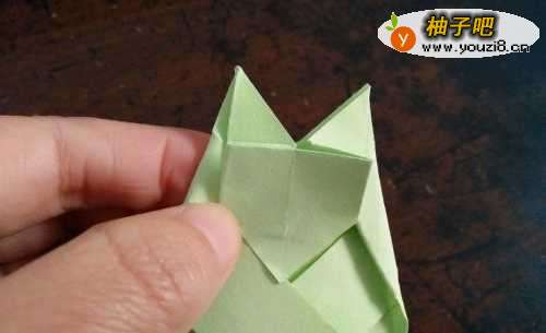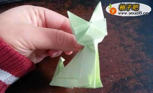 6我们捏住脖子的地方向后折,如图一。把尾巴向内折,一只可爱的小猫就折好了。