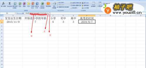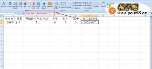 5公式解释,date是计算日期的公式——year(a2)提取A2单元格的年份,然后再加读书前的年龄和读书时的年数,6指月份,7指天数。高考每年是6月7日开始。