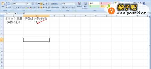 2接着在B1输入上小学年龄的标题——然后在B2单元格输入打算让小学几岁读小学,是6岁还是7岁。