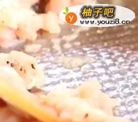 5锅内倒入黄油,将腌制好的鸡胸肉倒入炒熟。