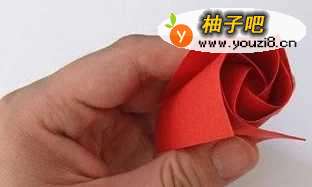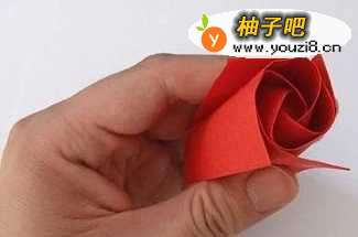 11将底部向上进行折叠,即如折纸图示所示进行折叠实施。在完成之后就能开始对这个手工折纸玫瑰进行整形了。整形的重点实际上就是在折纸玫瑰的花瓣处进行一些折叠整理。最终是否在效果上真正的变得好看了,还在于你的整形功力哦。能看到最终完成的手工折纸玫瑰也是非常漂亮的!