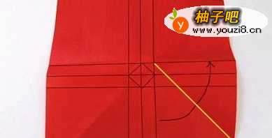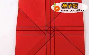 7在折纸模型中间部分的两点之间留下预折痕,这是局部折叠,所以在具体折叠的时候注意手的轻重和幅度的大小。剩下的三个对应相同部位也按照相同的方式进行折叠,同样是留下预折痕方便后面的折叠处理。
