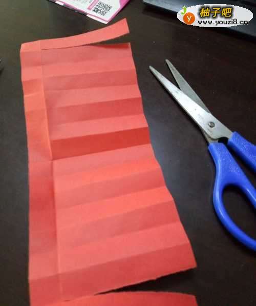 准备长方形的卡纸,按一厘米左右的宽度折出折痕