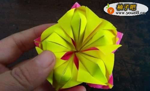 今天给男孩子伴们介绍一款超级简单漂亮的小花,真的是非常的简单,只需要五张正方形的彩纸折好后,组合而成。不过有一点必须提示大家,那就是必须用软一点的纸,下面我用的纸有点硬,就不小心折破了,影响了效果。