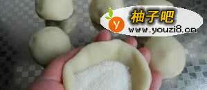 290克白糖加入15克面粉拌均匀成为馅料备用。