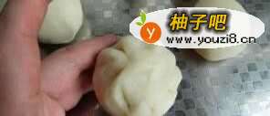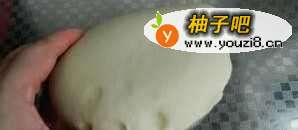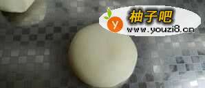 6烫面团取出后稍微冷凉,加入少许泡打粉揉成光滑的面团。