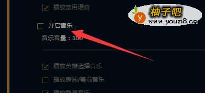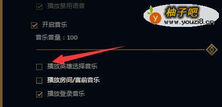 5如果你只想关闭选人时候背景音乐,那么你能只去掉“播放英雄选择音乐”前面的勾。