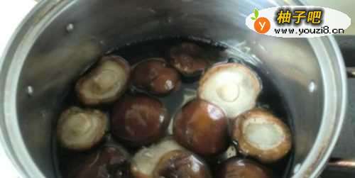 3香菇放入锅中煮上2分钟,沥干水分。