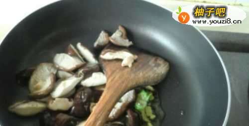 6倒入香菇翻炒片刻。