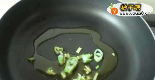 5炒锅倒油爆香葱姜。