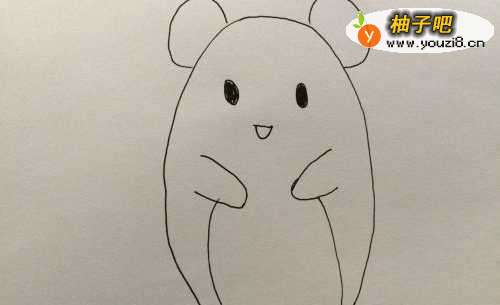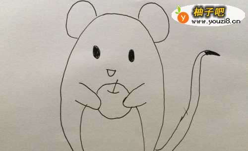 5然后向下画出两条弧线,是小老鼠的肚皮哦。