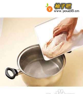 4倒入足够量的温水,水面一定要将鸭身完全淹没。