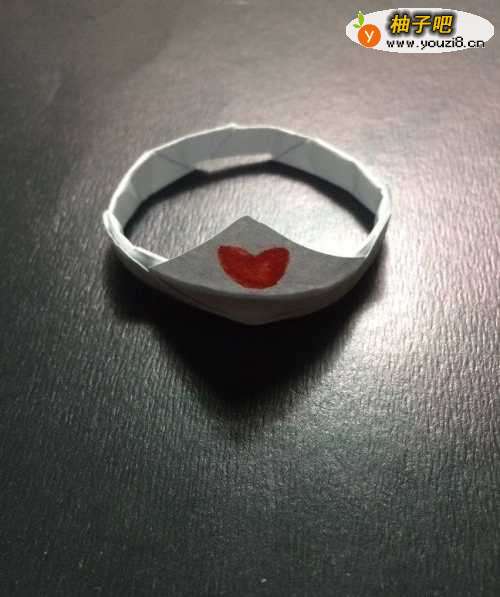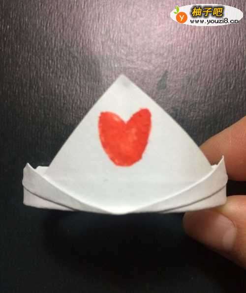 7然后把三角形翻到上面盖住刚刚折叠的部分,再画一个腊汽慎红心。
