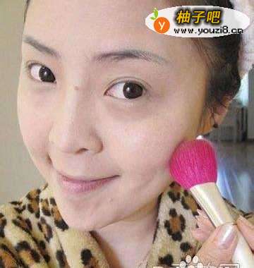 4选择大号的散粉刷蘸取深色修容粉沿着耳朵下方往腮帮扫刷,脸部立马看上去小一号。
