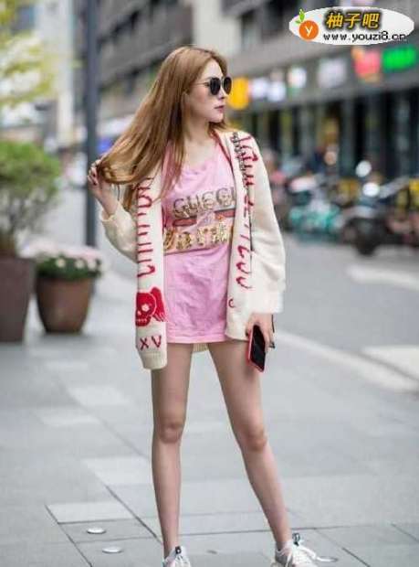搭配二:米色拼接老爹鞋+黑色牛仔短裤+紫色T恤光腿的穿搭是现在很时尚的,这种搭配风格很适合小个子女孩子,米色拼接老爹鞋搭配一件宽宽大大的紫色T恤,再配上一条个性的黑色牛仔短裤,穿出下衣失踪的效果,特别显腿长。