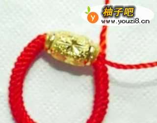 3金刚结编好后,穿入转运珠,线头从金刚结顶部穿过。
