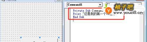 5接下来能做一个简单的小程序,就是点击一个按钮在窗体上输出一行字。我们能在工具箱里选择按钮CommandButton控件,然后在窗体Form1上拖动即可。