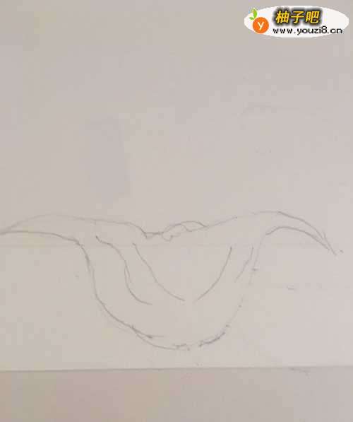第一步 先画一个半个圆圈向上 左右两边画上菱角的两个角