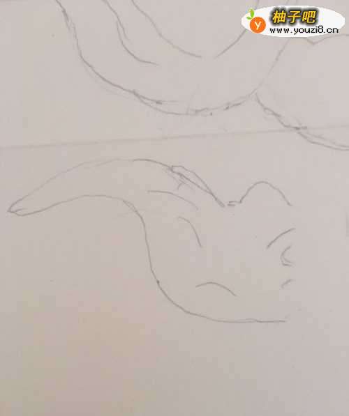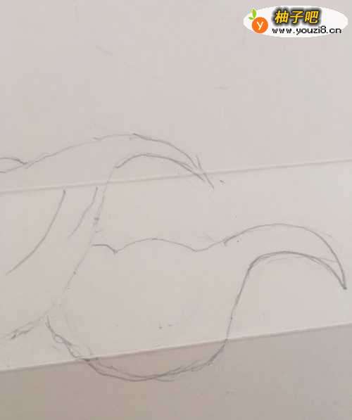 3第三步 再从第一个菱角旁边画上第二个菱角 还是记得挡着一点 这样看起来紧凑一些