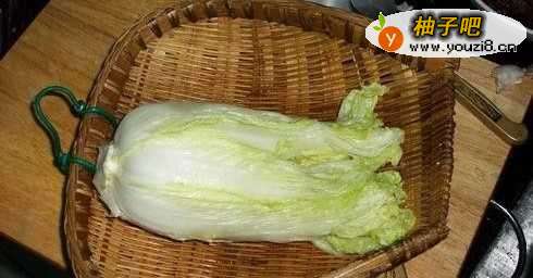 白菜一棵,剥去外层,洗净,里外均匀抹上盐,腌半天