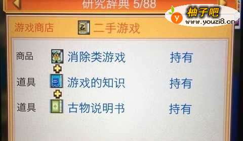 3二手游戏是消除类游戏加上游戏的知识加上古物说明书合成的