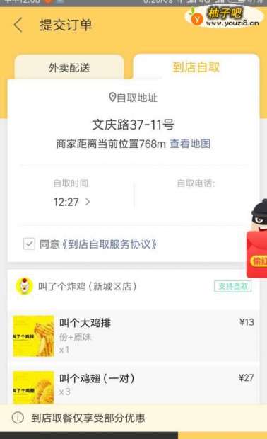 6细心的朋友能发现,自取和外卖配送的费用是不同的,本次我们节约了3元钱。