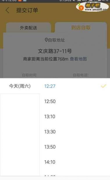 3在结算页面里我们能看到默认选择的是外卖配送,这时你选择左侧的到店自取。