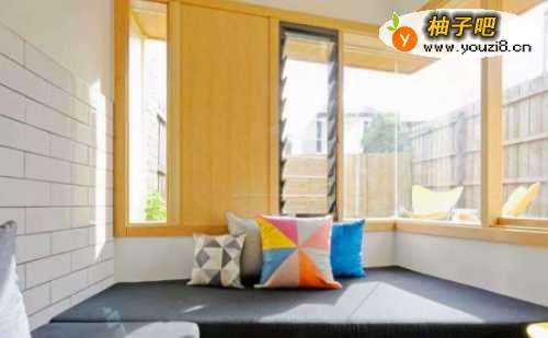 飘窗可设计成榻榻米的形式,这样,冬日躺在上面看书,非常温馨,还能晒太阳;当然,选择榻榻米时,要选购质量好的,最好有隔空层的,保证透气、不受潮。