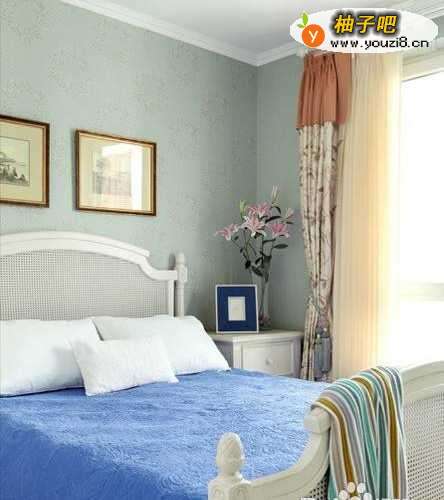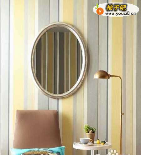 6卧室内的条纹宿独壁纸是主人很得意的一处设计,复古中又稍带明快,即使久看,也不觉厌倦。