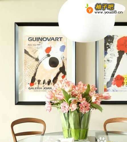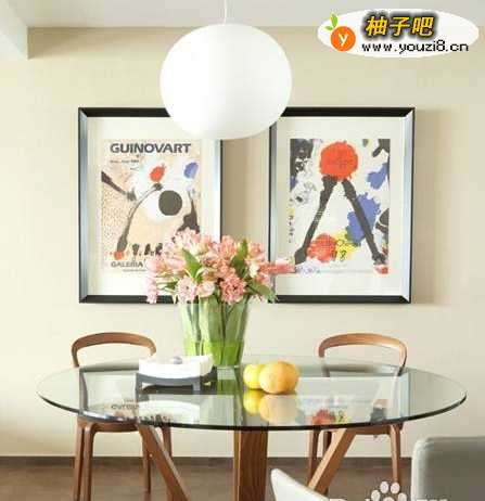 2开放式的餐厅区域选用实木与玻璃两种材质的搭配,灰色的皮质餐椅打破了对称空彩游爷间的呆板。