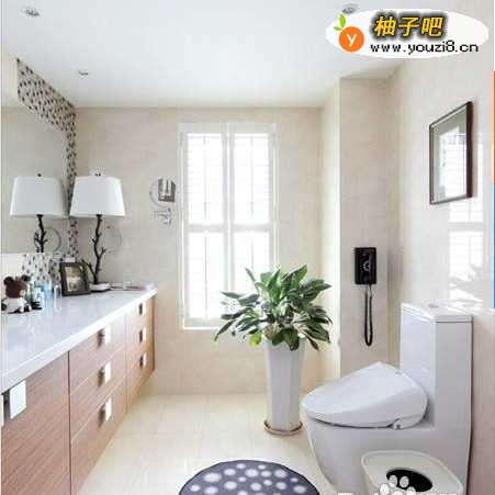 12主卫通体的梳妆镜使本就宽敞的空间更为宽阔,座便器上方的墙壁上悬挂了两张意味深长的植物装饰画,痕散设计师的鬼马精灵不由让人称绝。