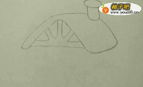 5然后用几条直线,画出一个扇形,作小房子的房屋支架。