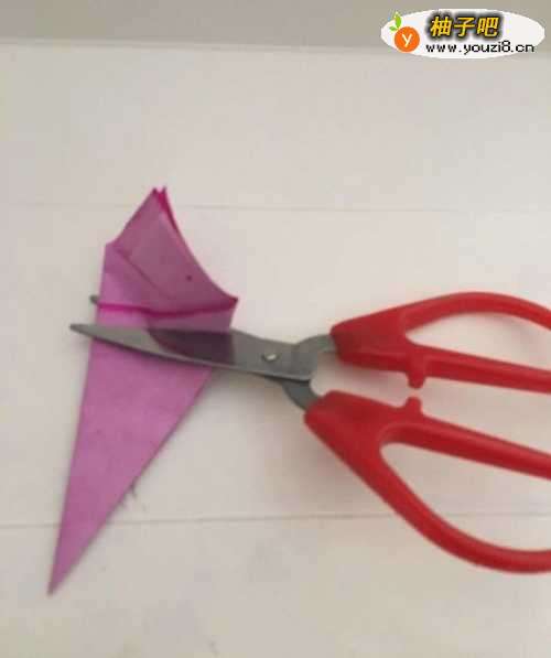 4第四步 对折完之后 拿起剪刀 从最低的那页剪去 免得图形超过空纸