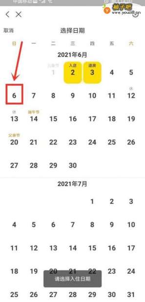 7选择入住日期。