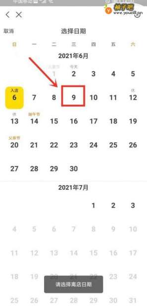 8选择离店日期。