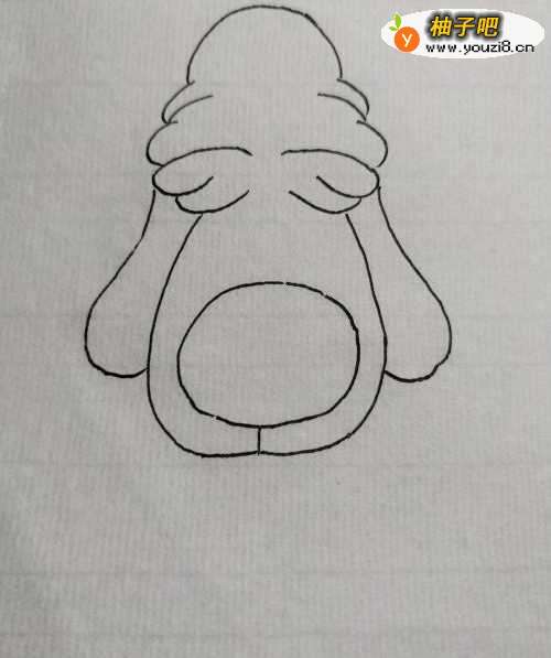 4然后向下画出狗狗的大脸。