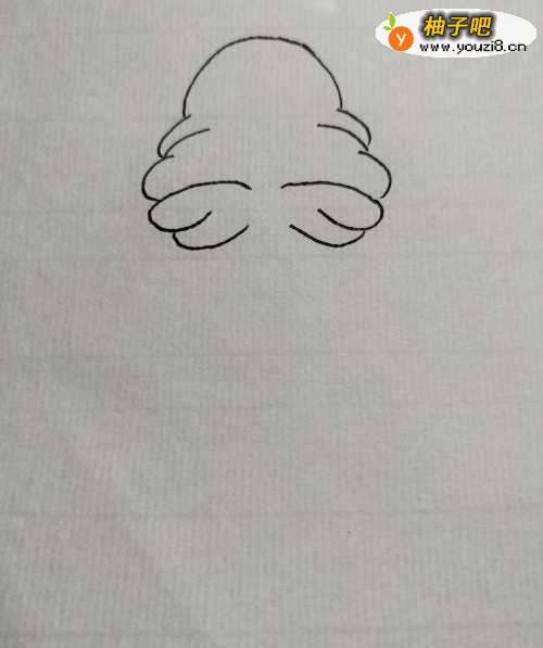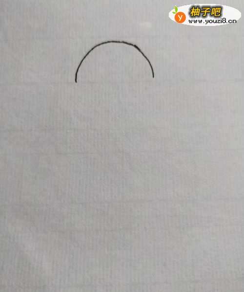 2准备好我们需要的颜色之后,先在纸上画出一条弧线,这是狗狗的头顶。
