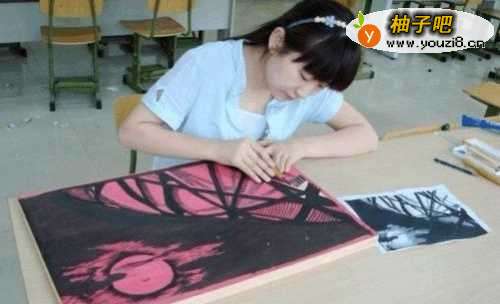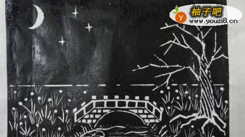 ② 能在用墨涂黑的板面上直接用铅笔转画画稿,也能画在复写纸上再拷贝在版上。