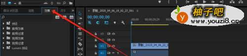 2在pr窗口工作区域选中的左侧点击“效果”