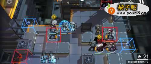 2然后在两个先锋前上两个重装干员。摆放位置如下图所示。