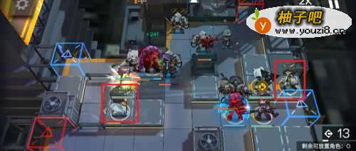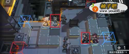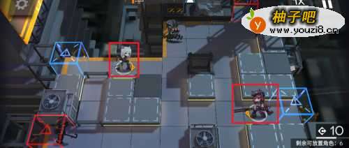3上完重装干员,分别在两路上两个远程输出干员。摆放位置如下图所示。